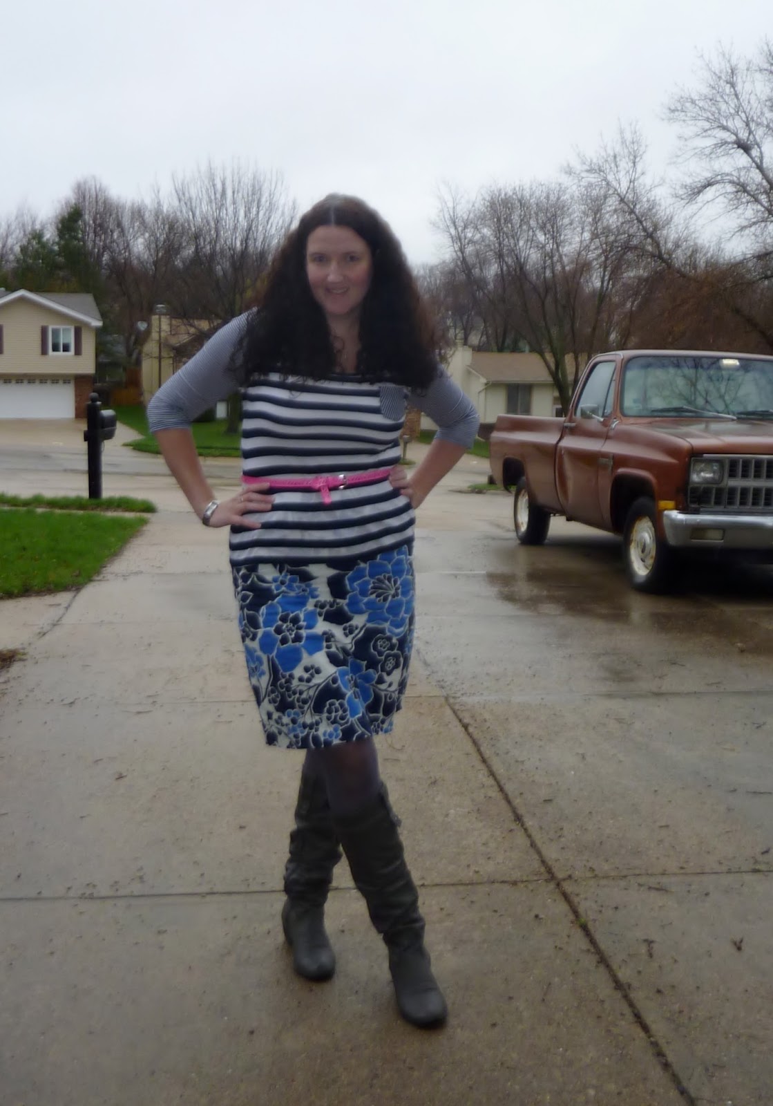 And finally, I had another wardrobe malfunction. Around noon, I noticed a snagged thread on my tights and thought I could just snip it off. Mistake. A small hole appeared immediately, and as the day progressed, it turned into a giant run. So, I will be looking for a new pair of gray tights, but hopefully not until next fall!