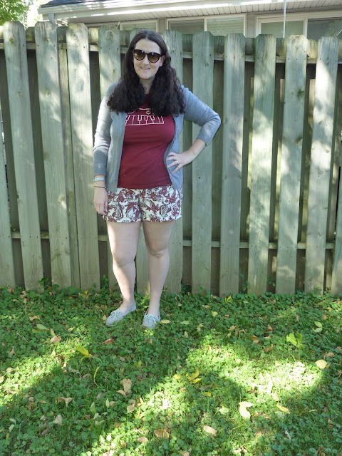Shorts season is coming to an end, so I better get more pants that fit soon! I've been wearing these shorts a lot this whole summer and really thanking past self for buying a few pairs of shorts when I was pregnant in the winter the first time around. These shorts were less than $5 and I've worn them roughly a million times. Okay, that might be an exaggeration. But probably 50-100 times is accurate. That's a pretty great cost per wear, especially for a maternity item!